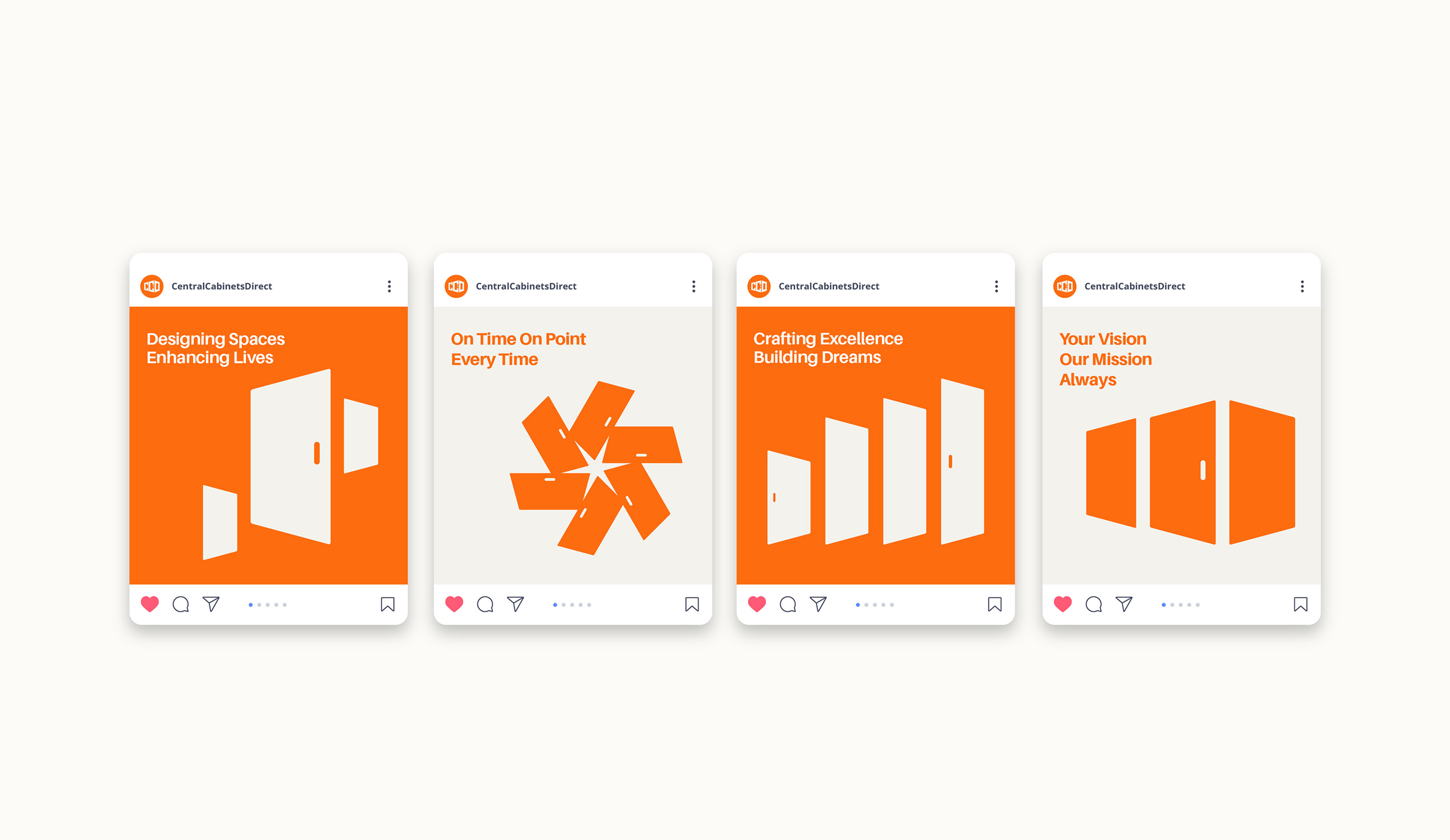 The logo identity, inspired by a harmonious blend of cabinet elements and the company's initials, embodies a flexible design system that can be employed both individually and extended as visual components for collateral materials and assets. With this innovative identity system in place, Central Cabinets Direct is primed to present itself to a broader customer base, characterized by a revitalized visual language and a bolstered corporate image.